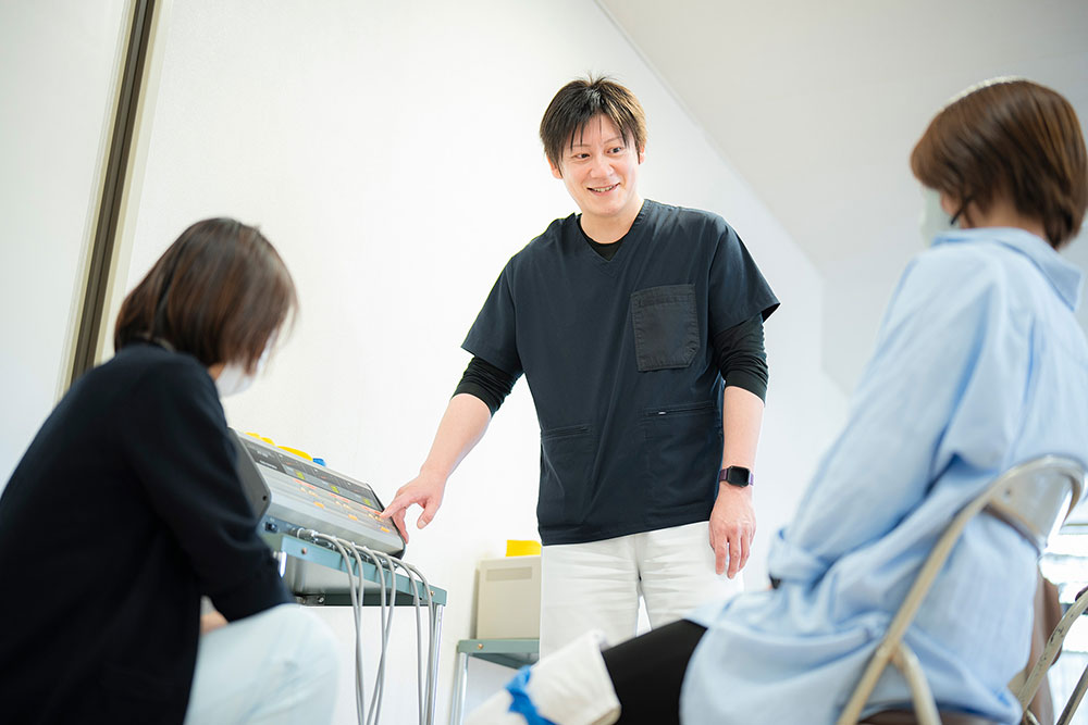 私が目指すのは、診療の先にある「笑顔」をつくることです。痛みが取れることはもちろん大切ですが、それ以上に「できなかったことができるようになった」「不安がなくなって気持ちが軽くなった」と感じてもらえる医療を届けたいと思っています。そのために、しっかりお話を聞き、一人ひとりに合った治療を行います。